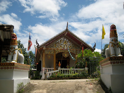 Post-lunch, Wade, Will, Kristen and I leave town on motorbikes, which is the Thai name for a high-powered, strong cc, automatic scooter (as I can't ride a motorcycle). It's my first day ever riding and I'm going against the recommendation of my hostel concierge who said bluntly, "do not rent a motorbike!" After a short fifteen minute tutorial, I'm off on my own. Due to the large amount of motorbike rental competition, I'm able to secure one for 30 hours with insurance for a mere 140Baht (~$4.50).